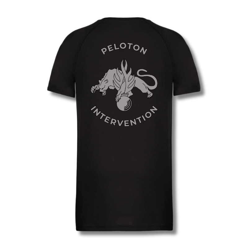 Le tee-shirt noir en polyester avec logo Peloton Intervention Gendarmerie est conçu pour offrir légèreté, respirabilité et résistance lors des activités opérationnelles ou sportives.
